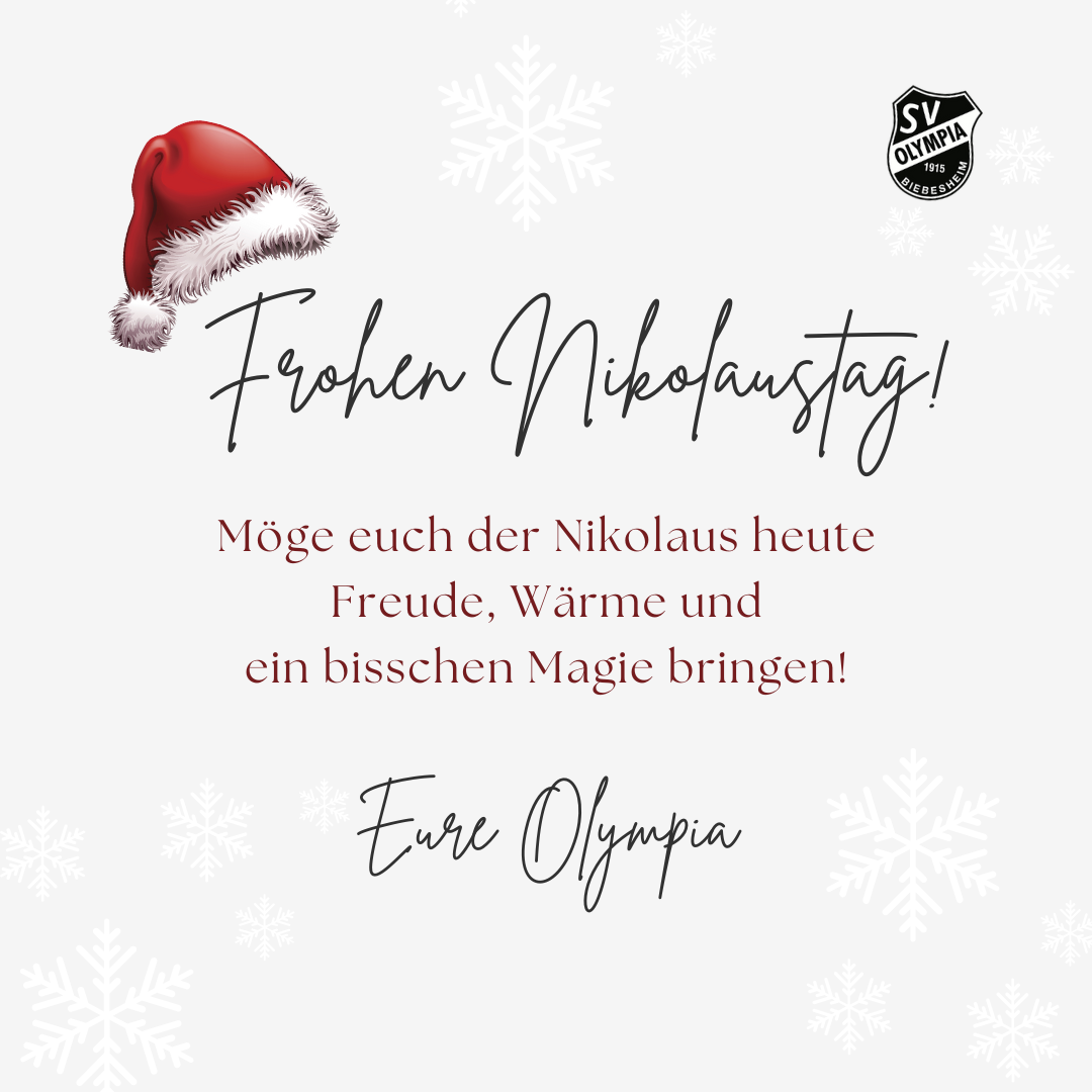 (06.12.25 10:00 Uhr) Wir wünschen euch einen schönen Nikolaustag! Wir hoffen, dass ihr fleißig eure Stiefel vor die Tür gestellt habt und diese nun voll mit lauter leckeren Kleinigkeiten sind! Eure Olympia