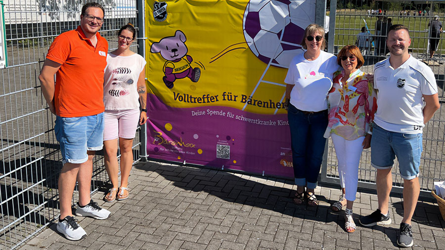 Vor genau vier Wochen weihten wir gemeinsam mit zwei Kolleginnen des Kinderhospiz Bärenherz in Wiesbaden und Marco Harth (Werbetechnik Harth) den Banner am Rheinstadion in Biebesheim ein.